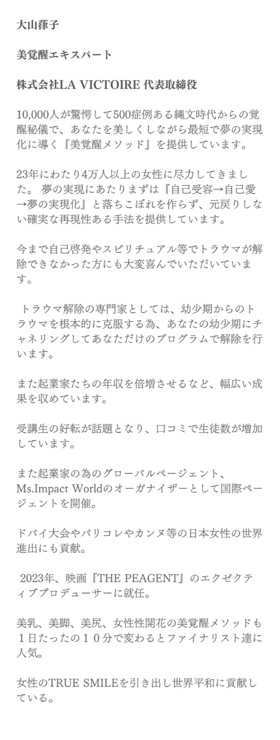 秘儀でトラウマから解放されて人生が大きく好転しミセスコンテストのグランプリに!